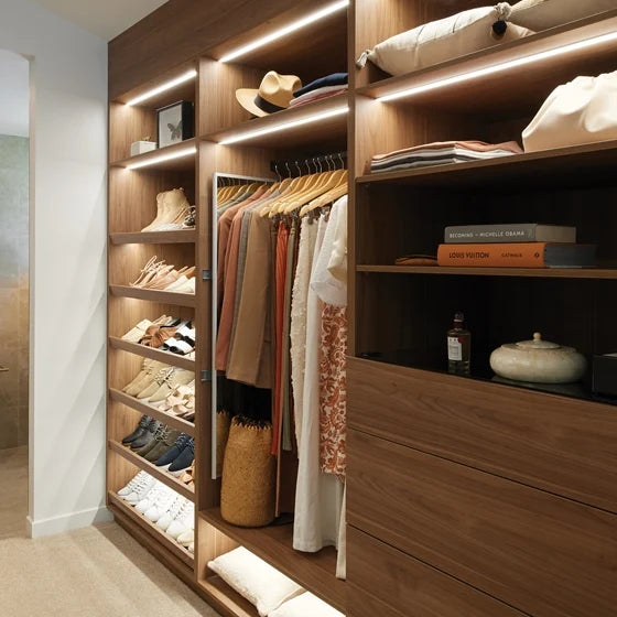 Bring excitement, life and movement into your wardrobe with a personalised HAFELE lighting system. Our designers will work with you to create the perfect lighting plan for your needs.